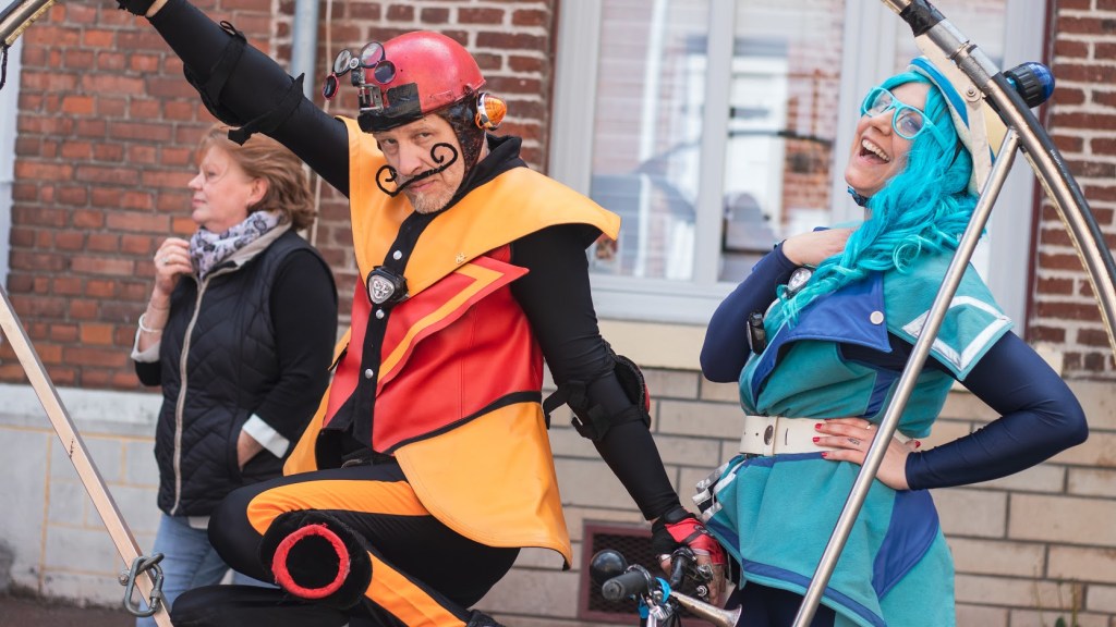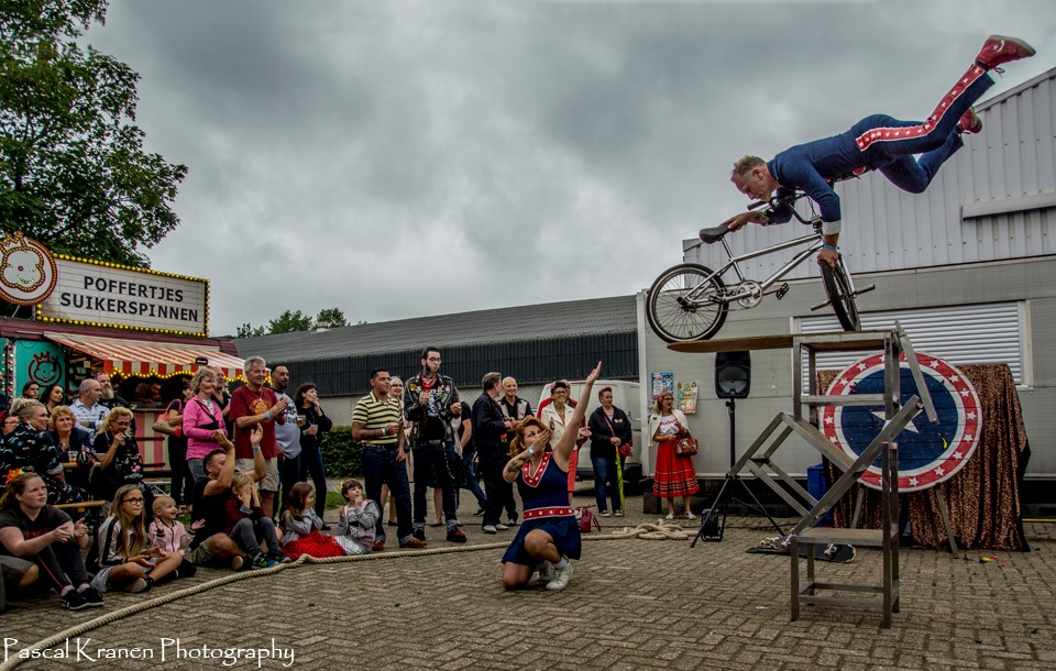 Cascadeur international, fan d’Elvis et D’Evel Knievel, Jeffy Stars se lance dans une suite de numéro d’équilibre BMXement acrobatique et physique.